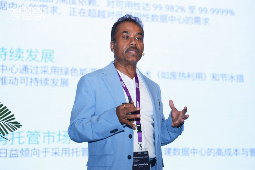 基于西门子能源全球发展战略,西门子能源技术专家,西门子能源股份公司电网科技集团数据中心全球业务负责人Gour Chandra Saha先生介绍了《西门子能源电网科技集团数据中心全球业务》,向与会观众分享了西门子能源在绿色能源和低碳建设方面的全球实践。作为全球领先的能源技术企业,西门子能源凭借多年的行业洞察、技术积累、数字化解决方案以及成功经验,持续推进算力与能源的深度协同,赋能低碳绿色数据中心向高质量发展迈进,助力客户建立可靠、可持续的数据中心。